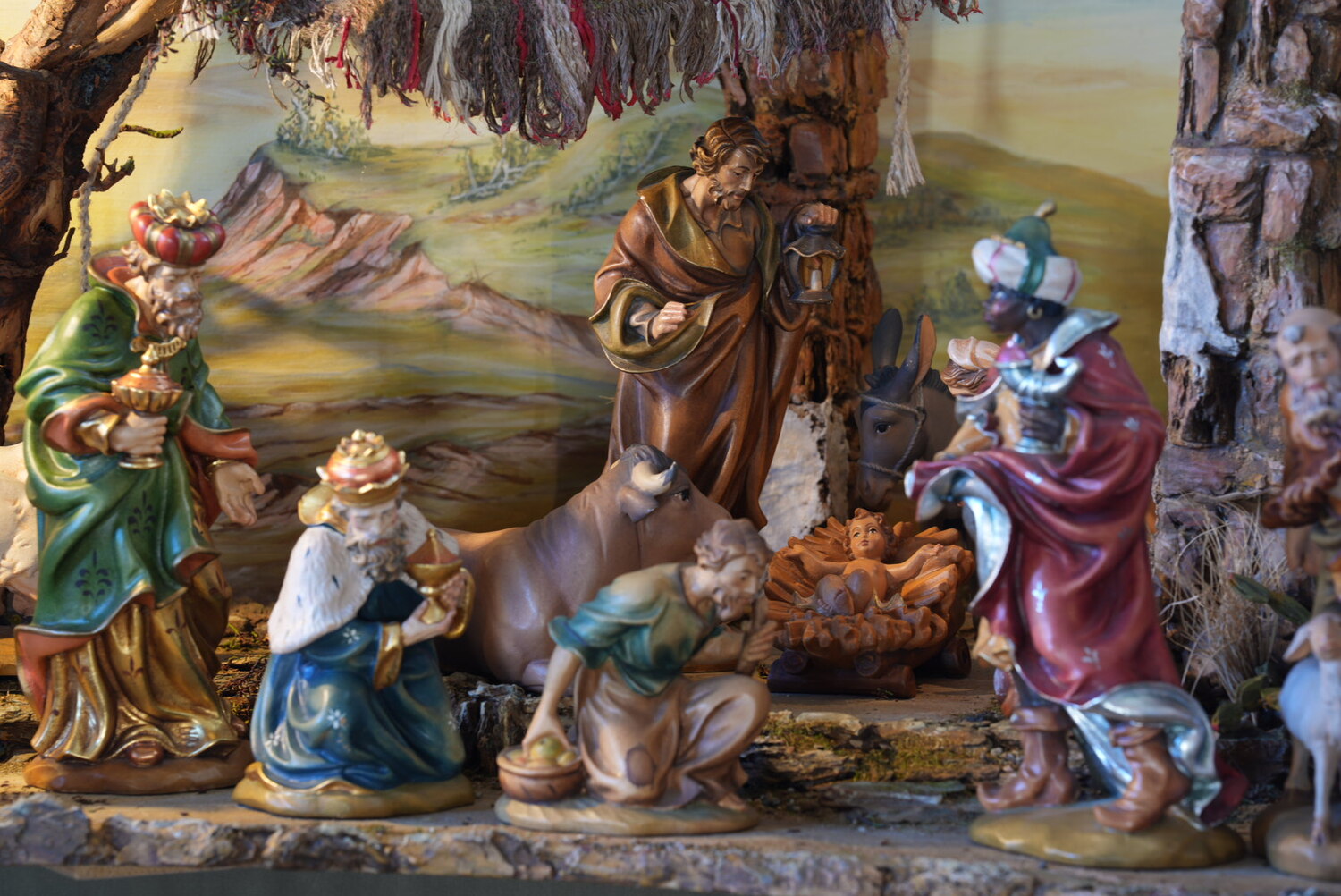 Hubert war die Krippe sehr wichtig und er hat sich auch nicht gescheut hochwertige holzgeschnitzte Figuren (Conrad Moroder St.Ulrich/Gröden 1998) zu seiner Krippe anzuschaffen.